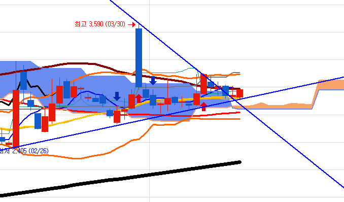 이런 분위기를 내일까지 이어간다면 내일 3100원을 넘어서는 순간 시세가 나올 수 있기 때무에 기대되는 상황입니다.