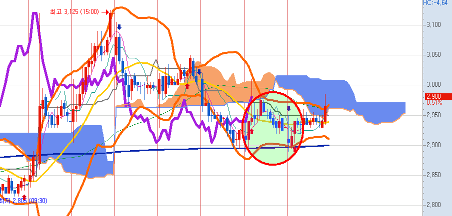 내일 혹시 조정이 와도 오늘 저점인 2900원대가 깨지지 않을 것으로 보입니다.