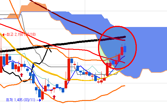 그리고 이 자리를 뚫어내면 주봉 상승신호도 나오게 될텐데요,