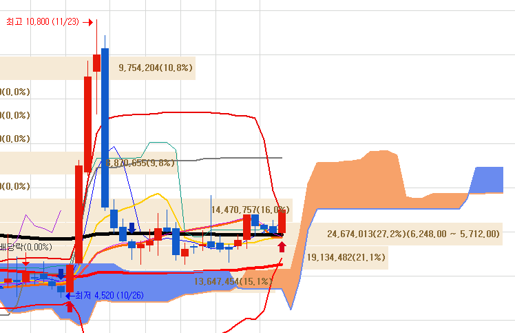 하지만 오늘 오전에 매수신호가 나오면서 다시 급등 신호가 완성되었습니다.