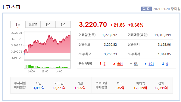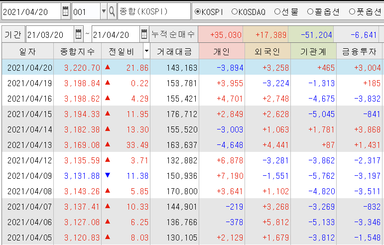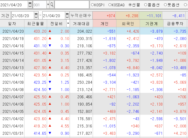 | 상승의 끝은 어디인가? 코스피/선물 장 마감시황 (2) | 2021.04.19 |