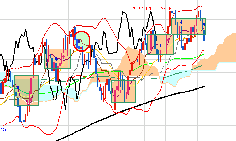 어제처럼 급등 두 번후에 매도신호로 하락시키나 싶었는데