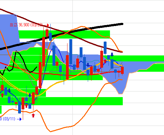 매도신호가 거슬리기는 하지만 잘 이겨낸다면 내일 오후에는 상승이 예상됩니다.