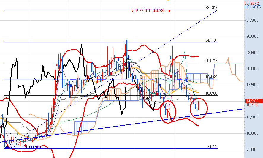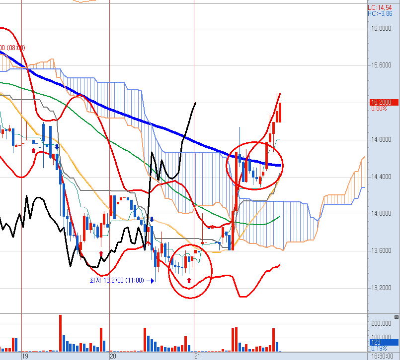 다행히 세력의 확실한 의지를 보여주는 반등이 나왔습니다.
