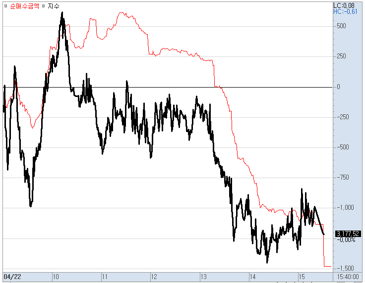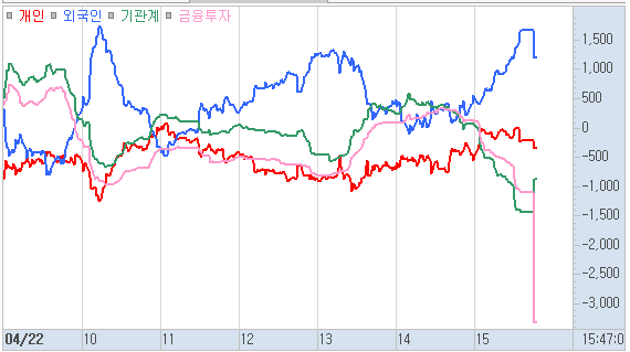 막판에 금융투자의 급격한 매도가 특이합니다.