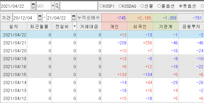 오늘 수급을 보아도 외국인들은 풋 매수를 정리하지 않았습니다.
