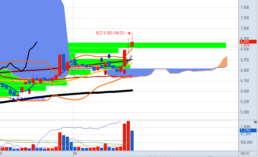 최근 이 매물대를 뚫어내기 위해 거래량을 동반한 상승이 있었는데요,