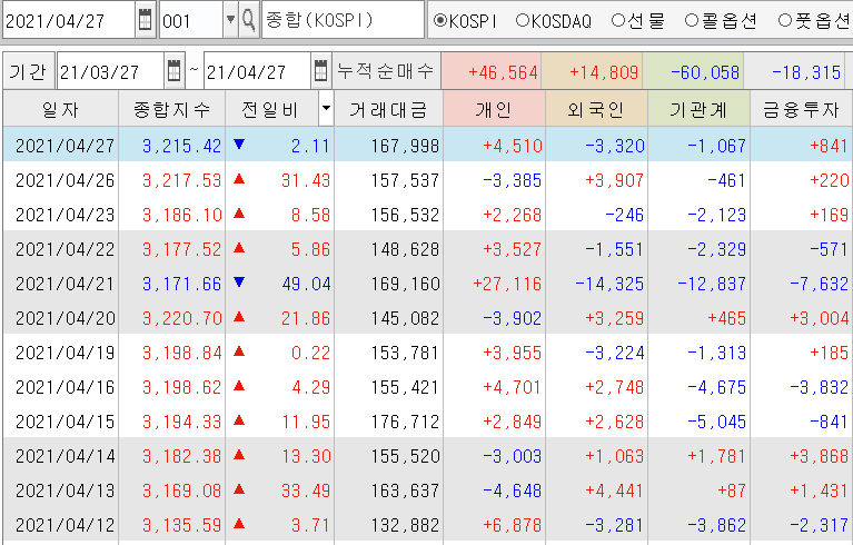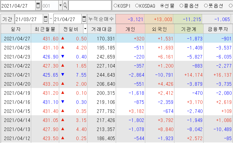 | 개인 풋 매수로 하락! 코스피 선물 마감 시황 분석 (2) | 2021.04.28 |