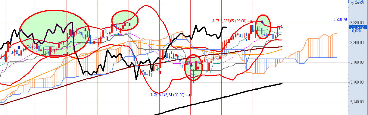 일봉으로 잘 보이지 않는 것이 있지만 분봉으로 보면 의미있는 흐름이 있었습니다.