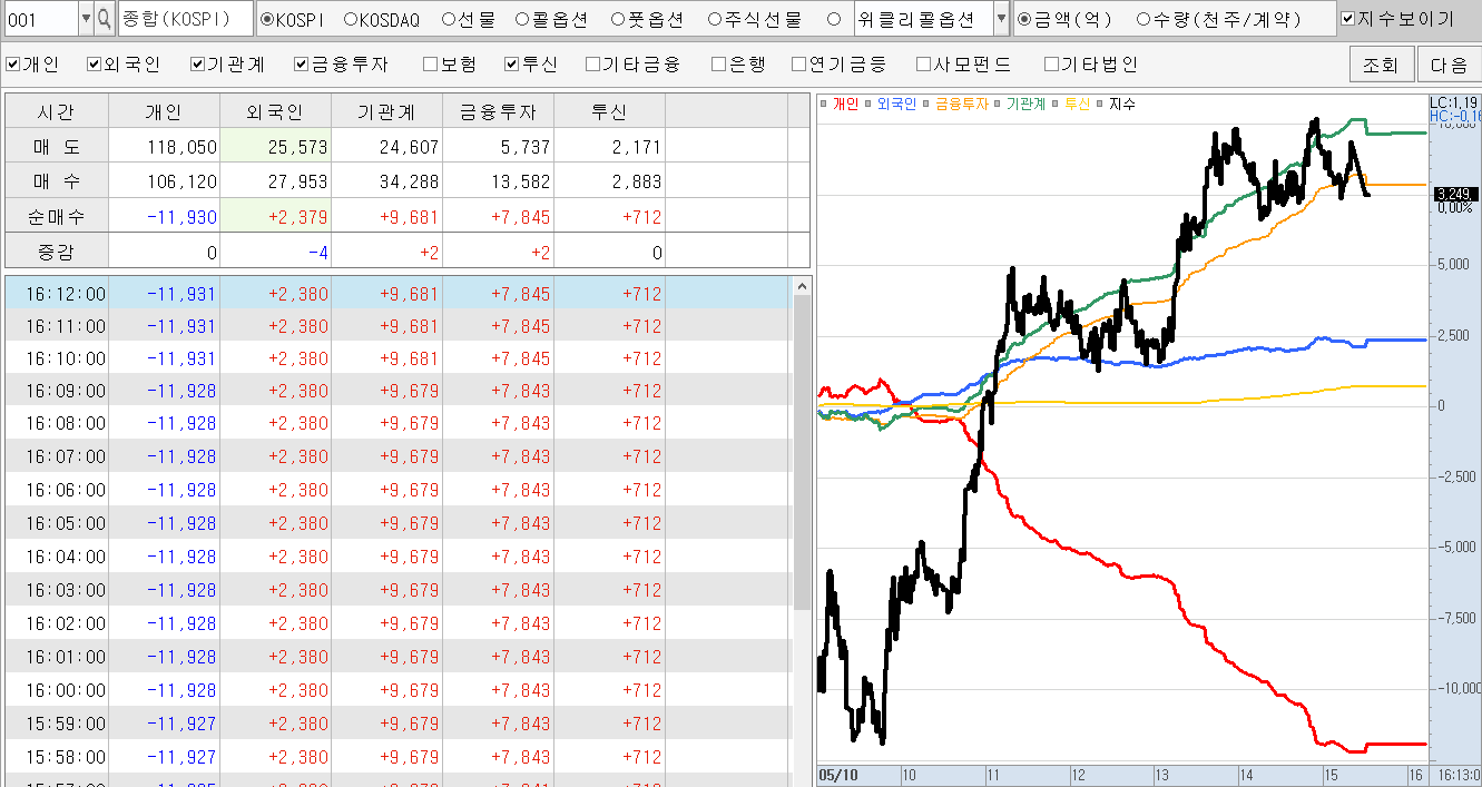 코스피 수급은 개인이 상당한 이익실현을 하면서 매도했고