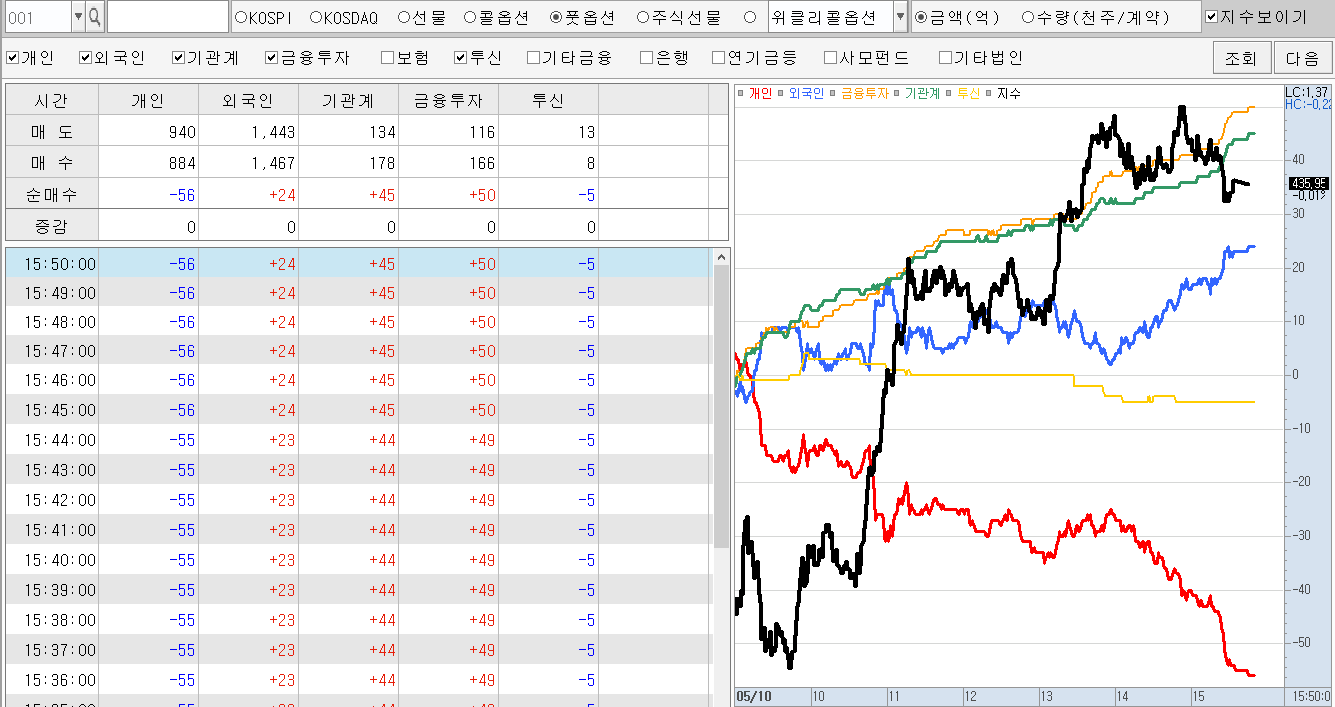 종합해 보면 개인 세력의 경우에는 내가 풋을 매도하여 수익을 냈지만