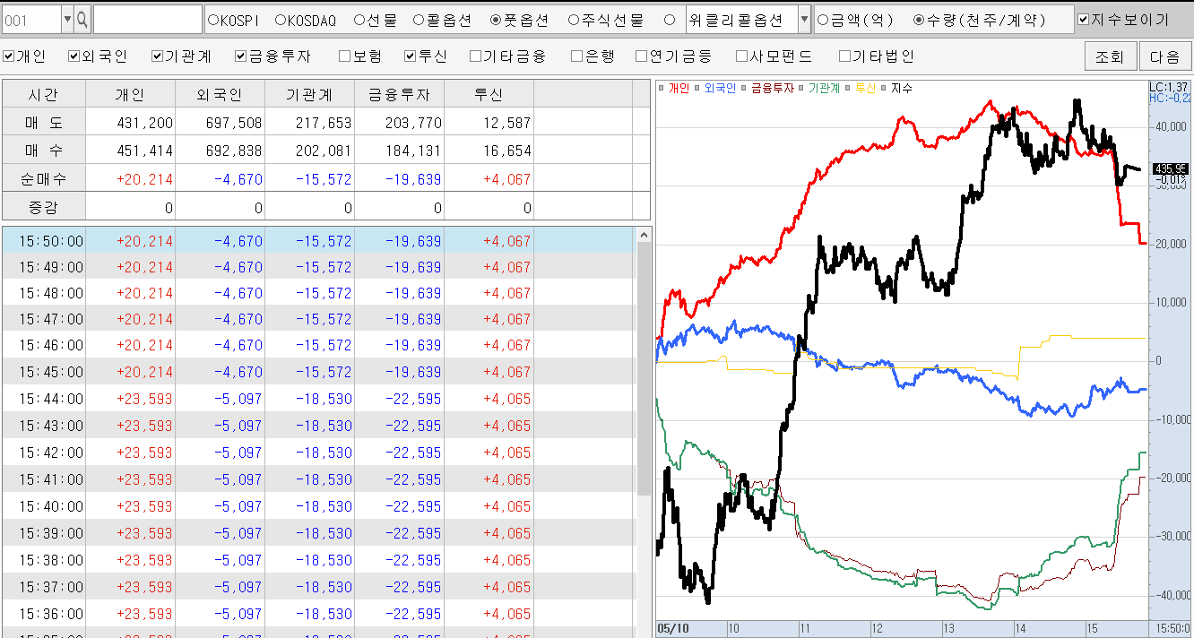재미있는 것은 금액으로 보면 콜옵션과 풋옵션에서 개인들이 수익이 나고
