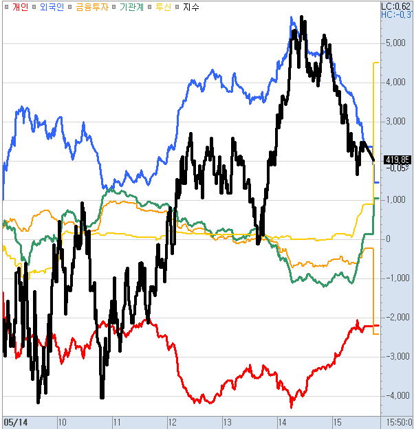 선물 추이를 보면 장 막판에 급하게 물량을 줄인 외국인들의 모습이 보입니다.