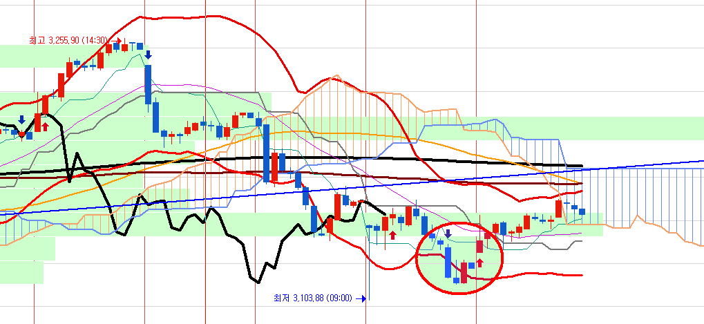 선물 챠트를 보면 오늘 상승시키기 위해 상당히 노력한 부분을 볼 수 있습니다.