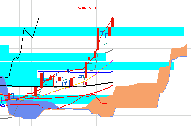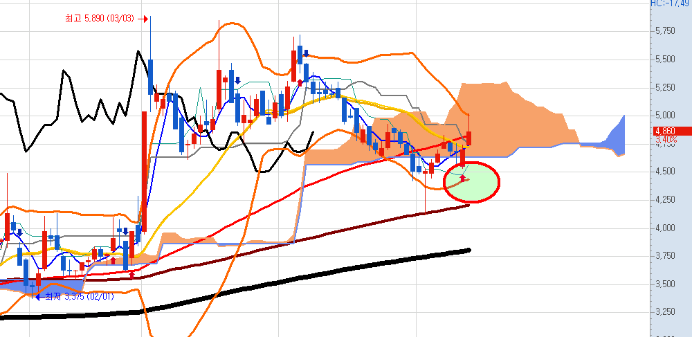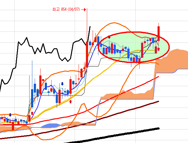 결론적으로 일봉 전고점을 넘어가면 다시 시세가 기대되는 종목입니다.