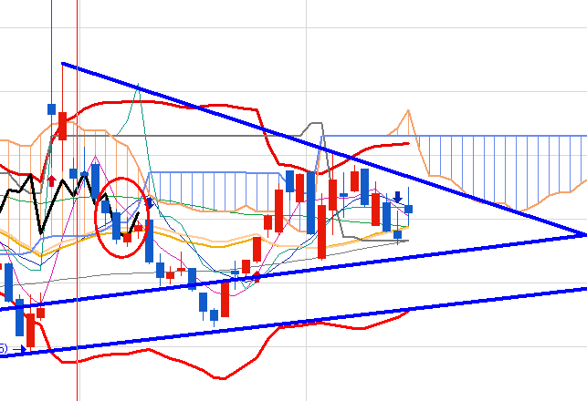 그리고 이렇게 보면 월요일은 삼각 수렴의 상단으로 진행될 가능성이 높아 보입니다 .