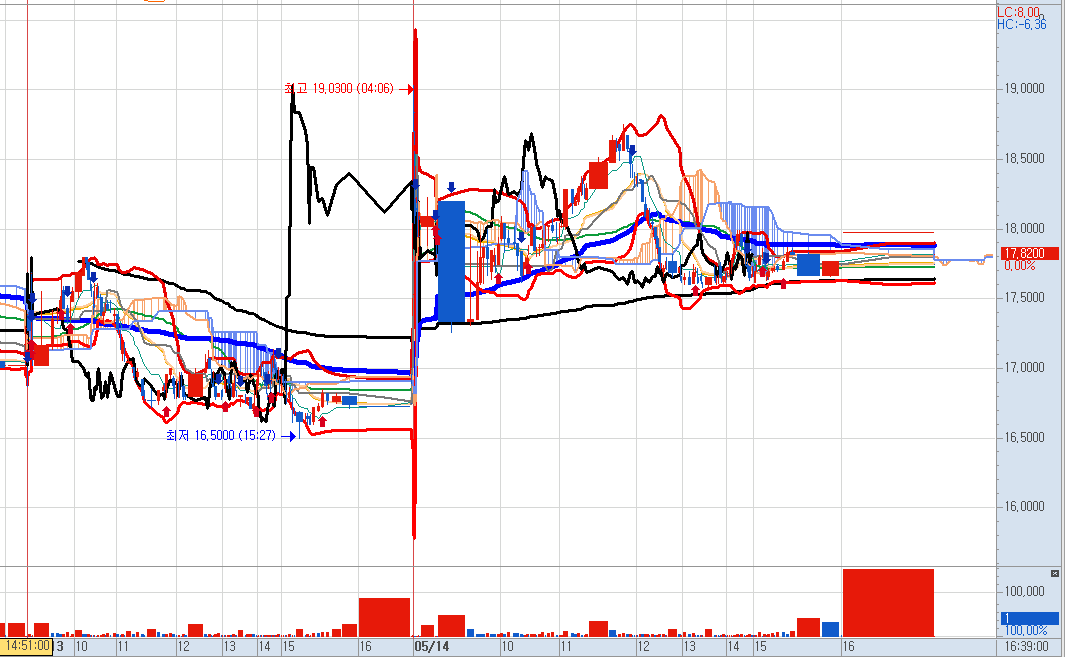 최근 챠트 흐름을 보면 거의 장 막판에 거래량에 몰려 있는 것을 볼 수 있습니다.