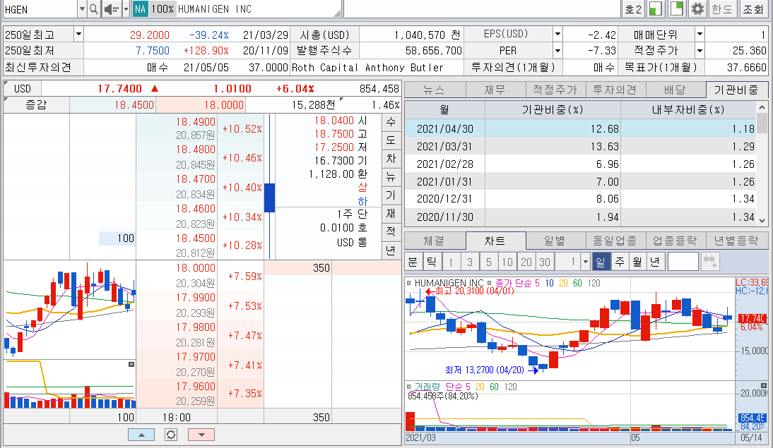 | 충분히 올라 주었나? 휴머니젠(HGEN) 장 마감 시황 분석 (2) | 2021.05.18 |