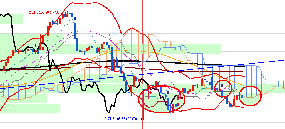 이번 주는 주봉이 좋지 않고 벌써 주봉으로는 음봉이 발생되었습니다.