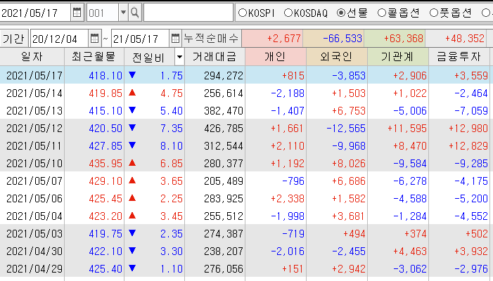 | 선물 장 중 시황 및 마감 시황 (0) | 2021.05.20 |