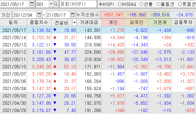 | 본격 하락 시작? 코스피 선물 장 마감 시황 분석 (1) | 2021.05.12 |