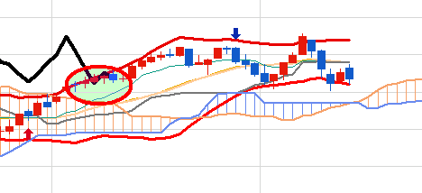 일봉을 보면 아직 후행스팬이 봉을 완전히 벗어나지 못한 상황입니다.