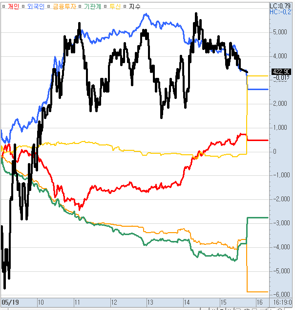 장 중 출렁임에도 외국인들은 동요하지 않았지만 막판에 물량을 줄인 것을 볼 수 있습니다.