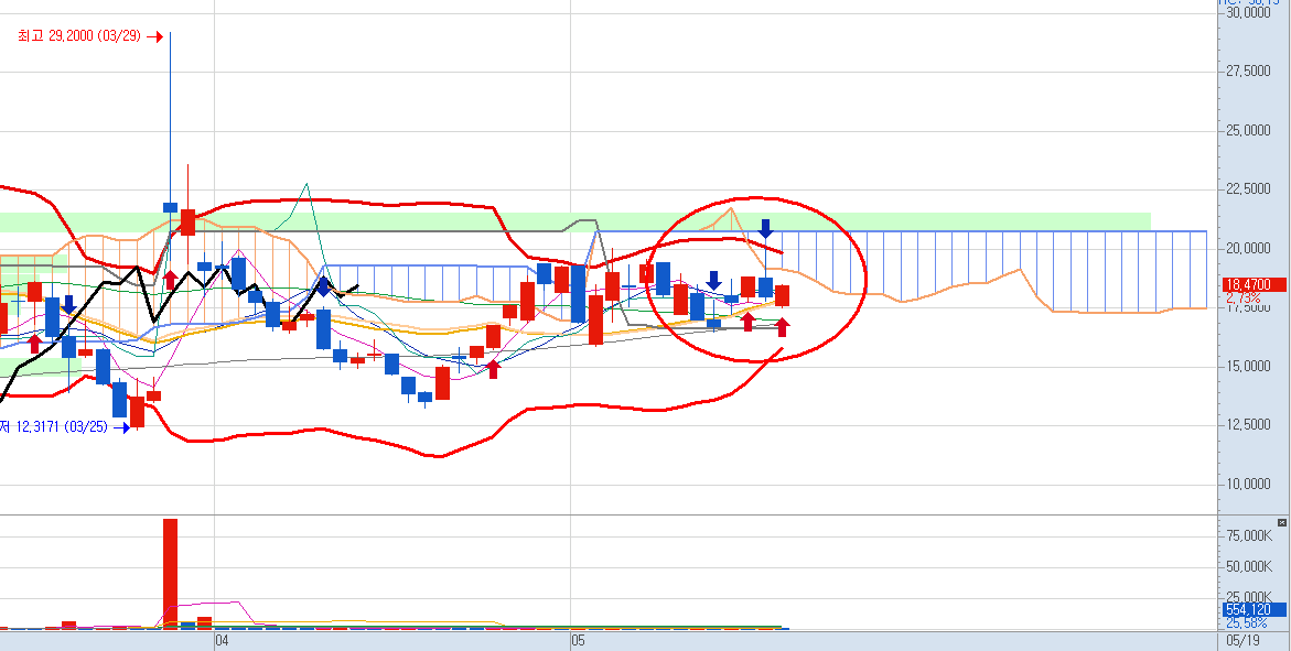 따라서 오늘 밤 상승한다면 20달러를 넘어서 매물대를 뚫어내려는 시도가 있을 것으로 예상합니다.