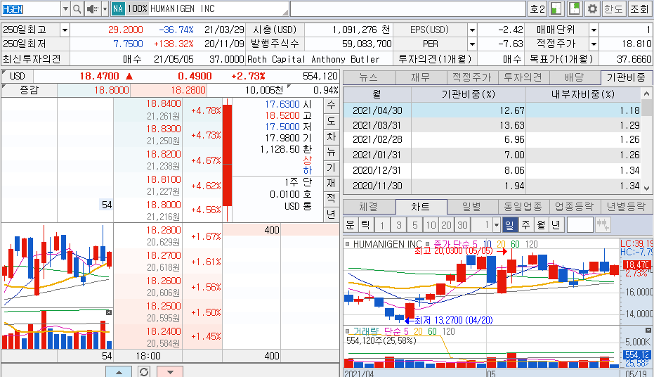 | 충분히 올라 주었나? 휴머니젠(HGEN) 장 마감 시황 분석 (2) | 2021.05.18 |