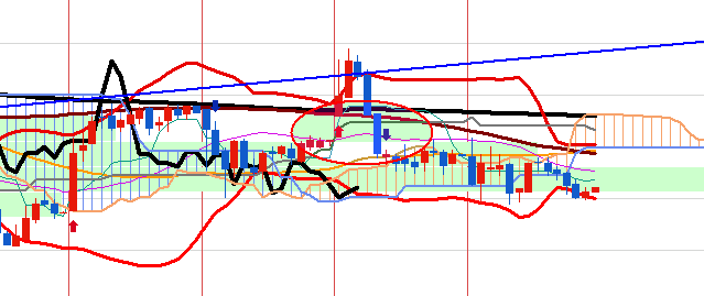 지표를 같이 보면 횡봉하고 있다는 것을 알 수 있습니다.