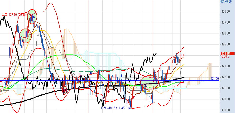 갭으로 시작하면서 매수 신호까지 만들어서 급등 패턴까지 활용했습니다.