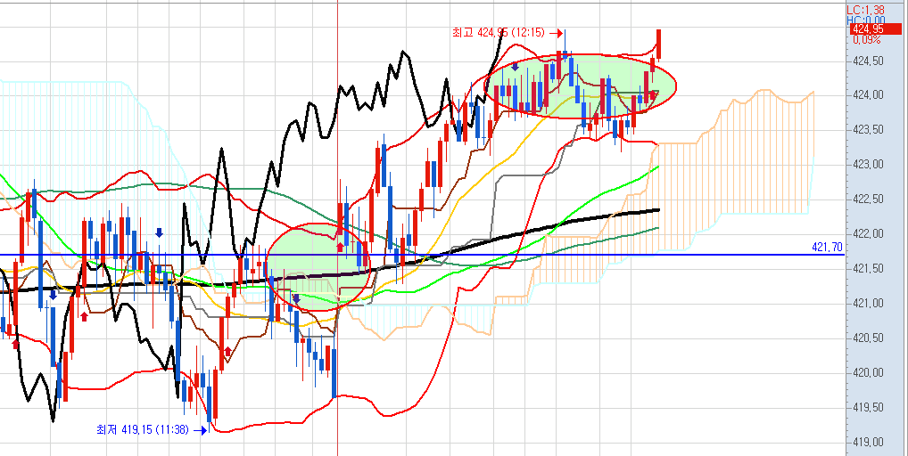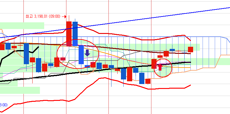 오늘 일봉으로 좋지 않은 구간에 좋지 않은 구조였음에도 상승했습니다.