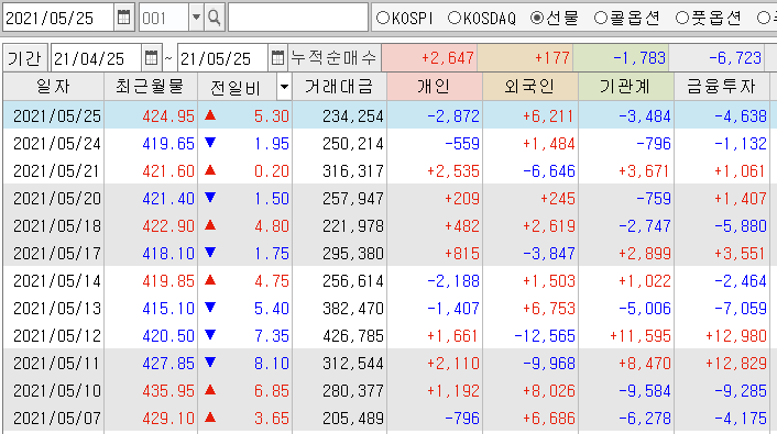 | 코스피 선물 장 중 시황 5/24 (0) | 2021.05.24 |