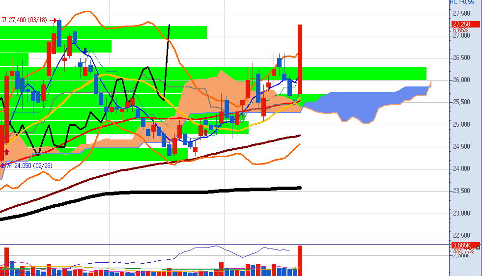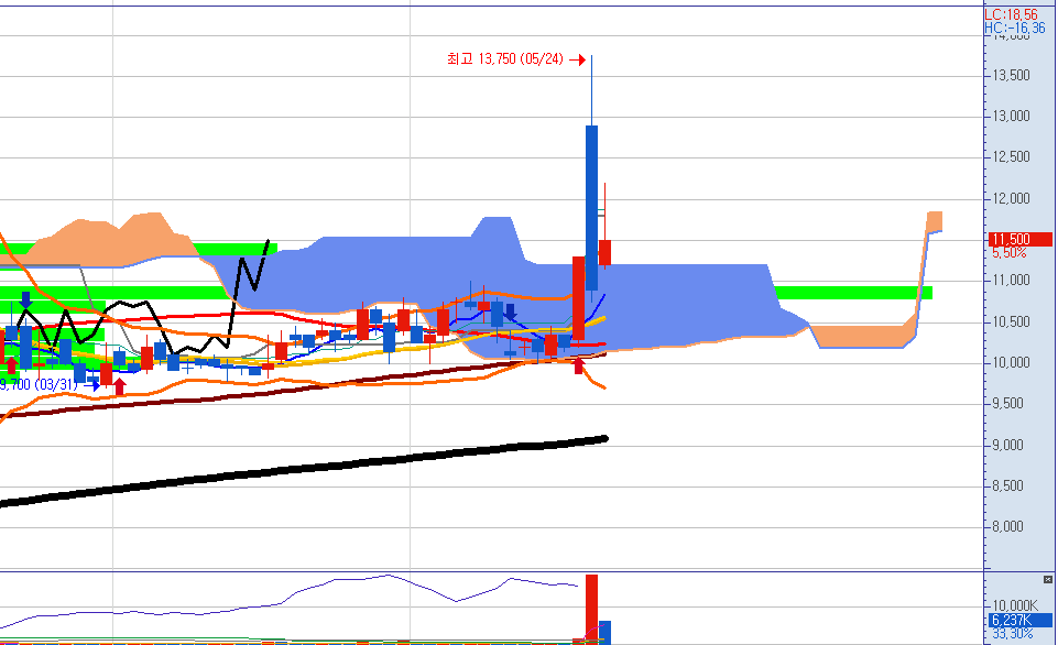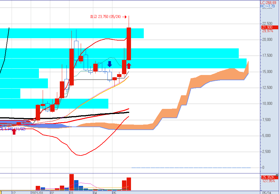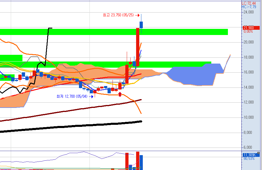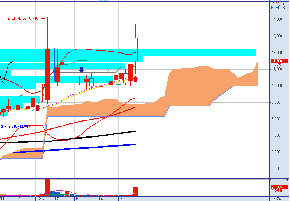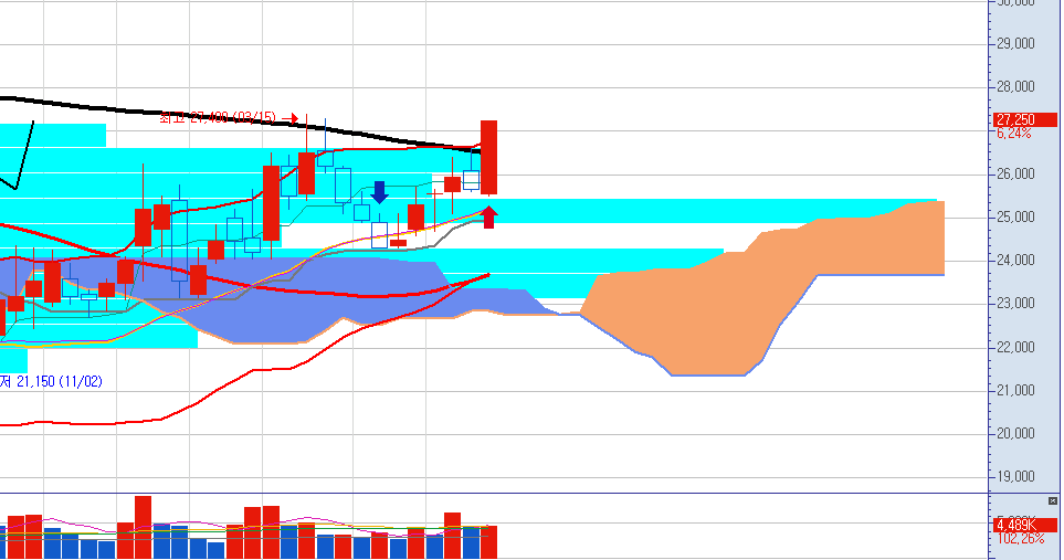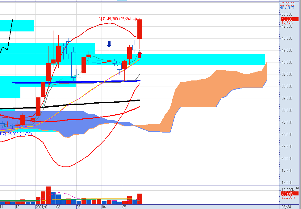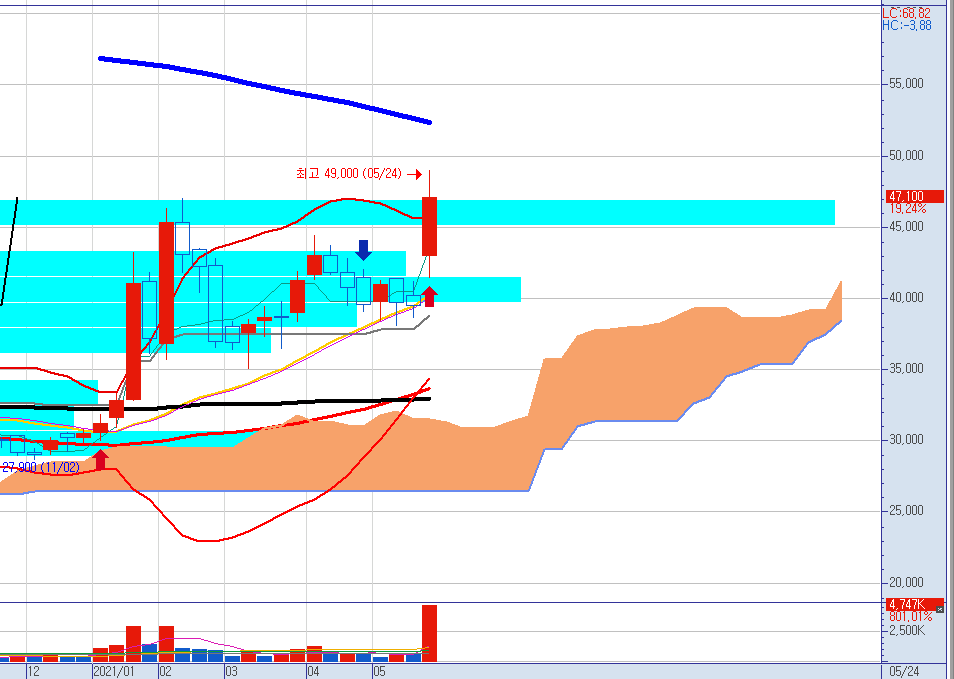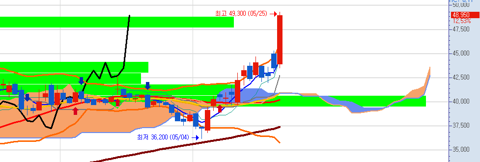 일봉상으로 애매하지만 급등 패턴이라고 할 수 있을 것 같습니다.