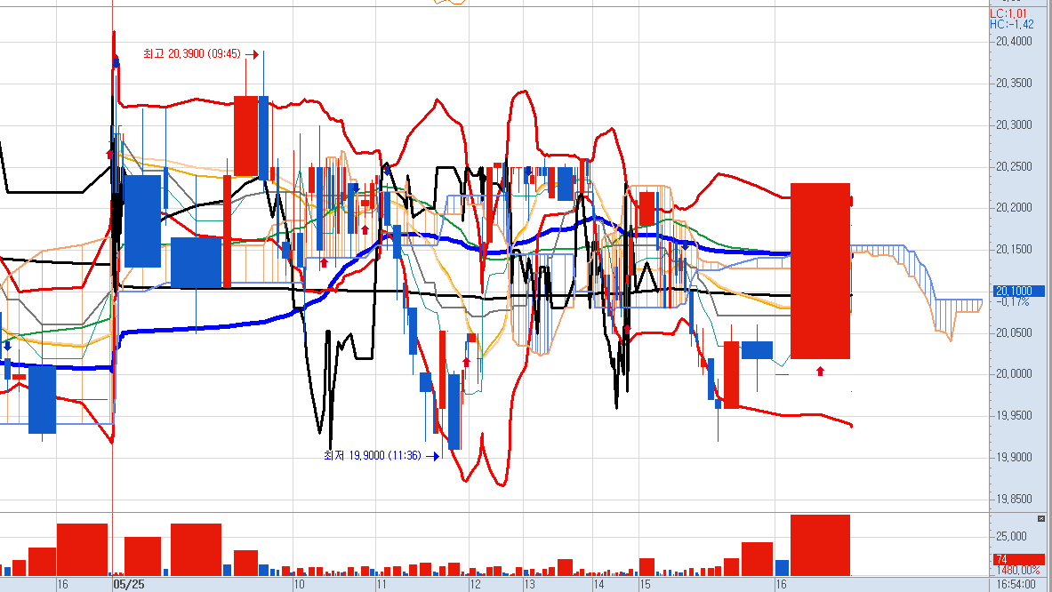 전 거래일과 동일하게 매도 매수 신호가 번갈아 가면 나오고 있습니다.