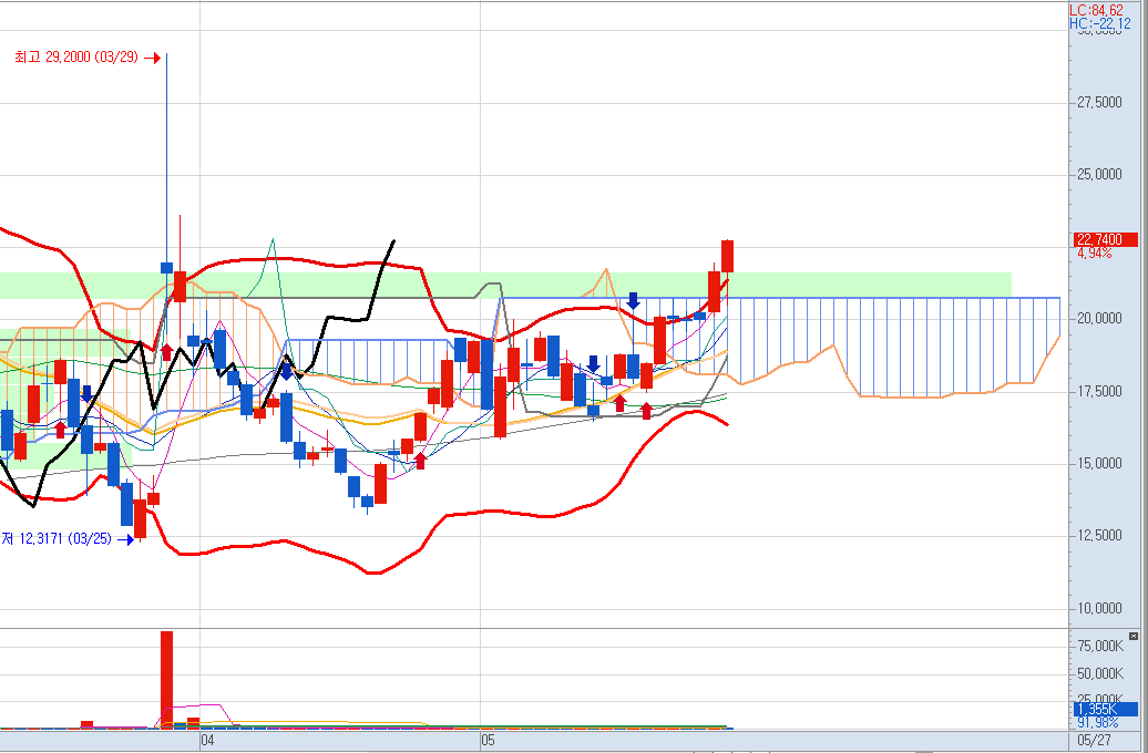 그리고 주봉도 볼밴 상단까지 거의 올라왔습니다.