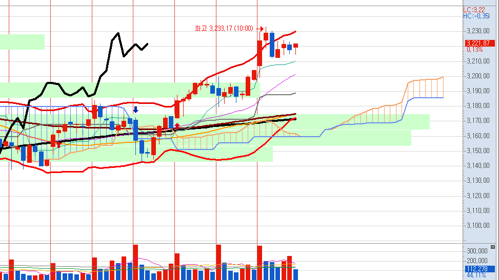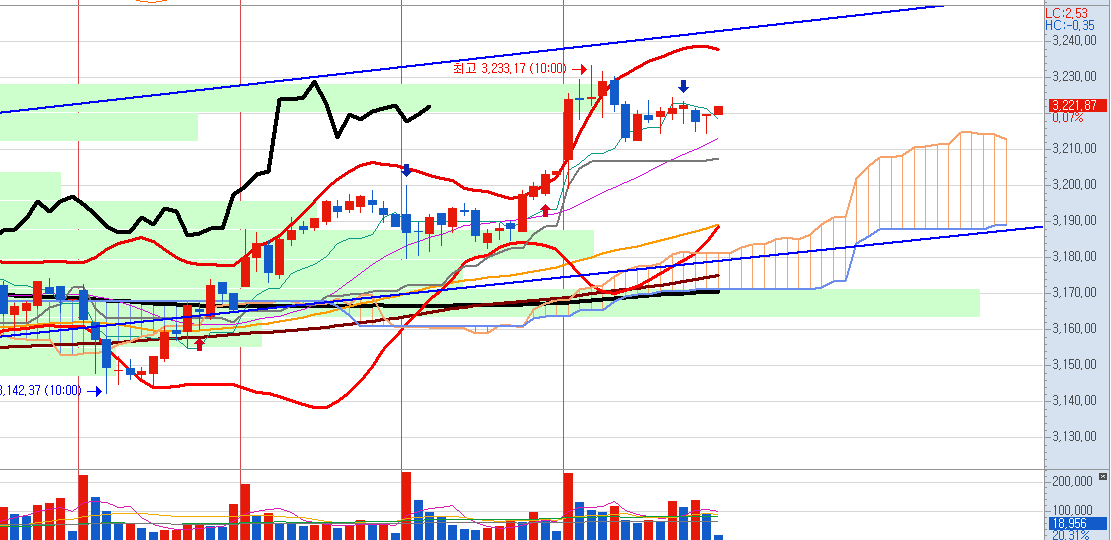 장중 고점은 0.91% 상승한 3233.17이었으며,