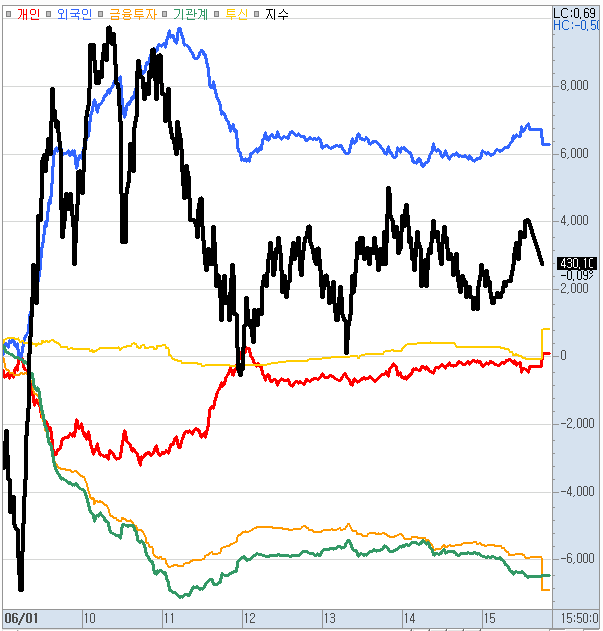 외국인들은 잠깐 매수하기도 했지만 결국 매도로 마감했습니다.