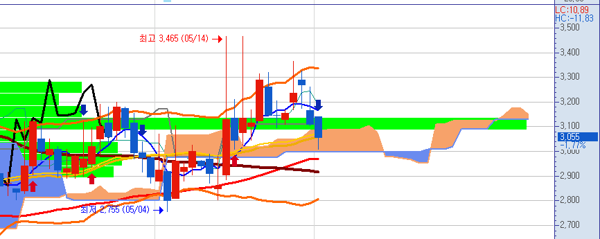 1.77% 하락한 3055원으로 55원이 내렸습니다.