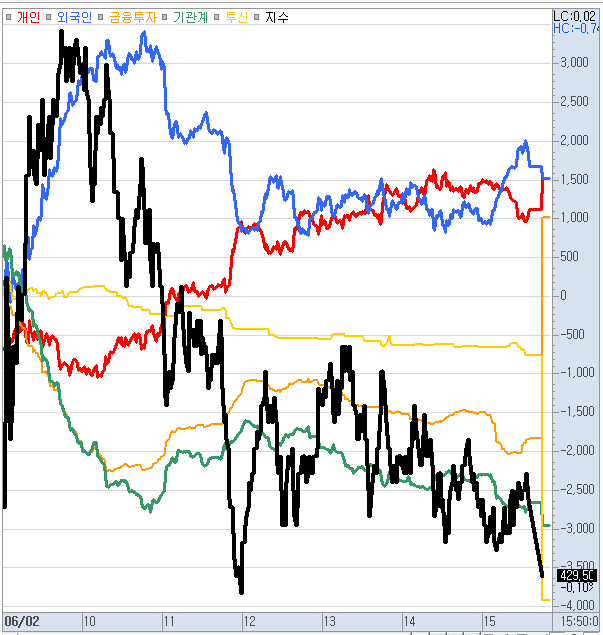 장 막판에 금융투가가 방향을 확 바꾸는 매수도 있었습니다.