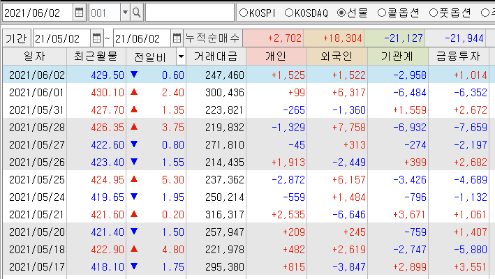 | 역시나 상승! 코스피 선물 장 마감 시황 분석 (2) | 2021.06.03 |