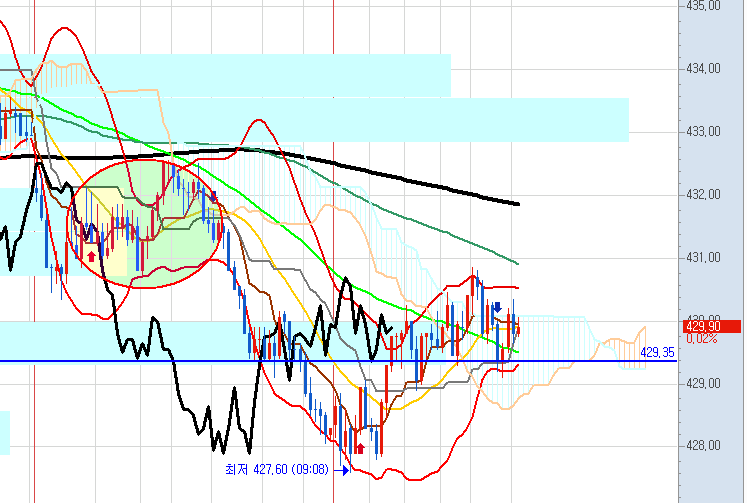 오늘 장은 시작하고 살짝 아래를 찍고 올라왔다가