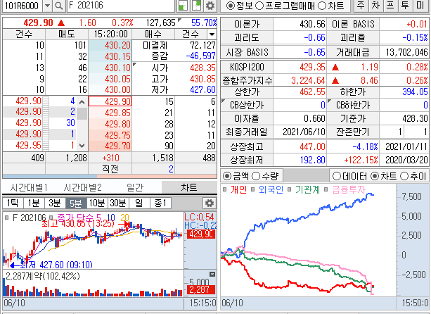 선물은 429.90으로 0.37% 상승 마감했는데요,