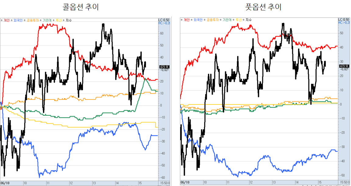 선물 기준으로 보면 거래량도 전일 거래량의 55% 수준으로 적었습니다.