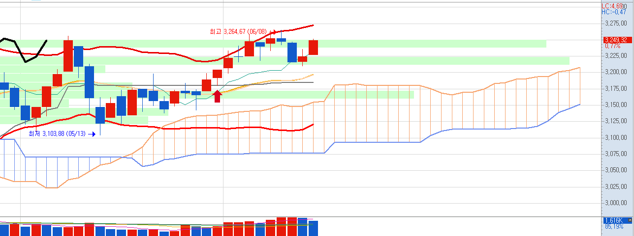 오늘 코스피는 3249.32 포인트로 24.68 포인트 오른