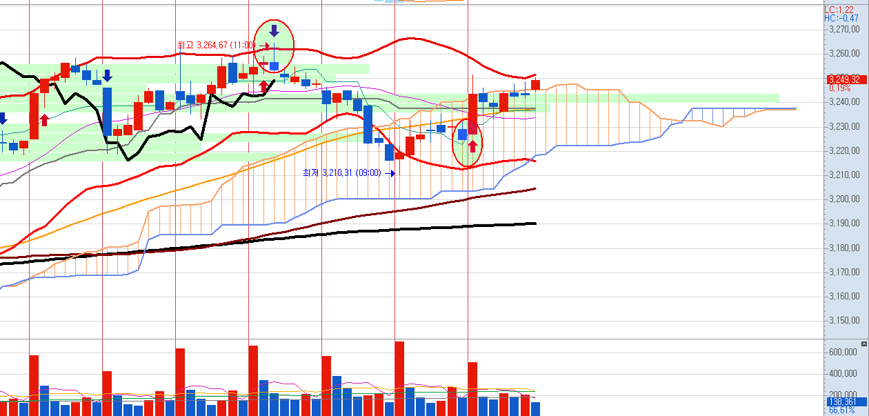 그냥 오늘의 흐름만 보면 횡보한 모양입니다.