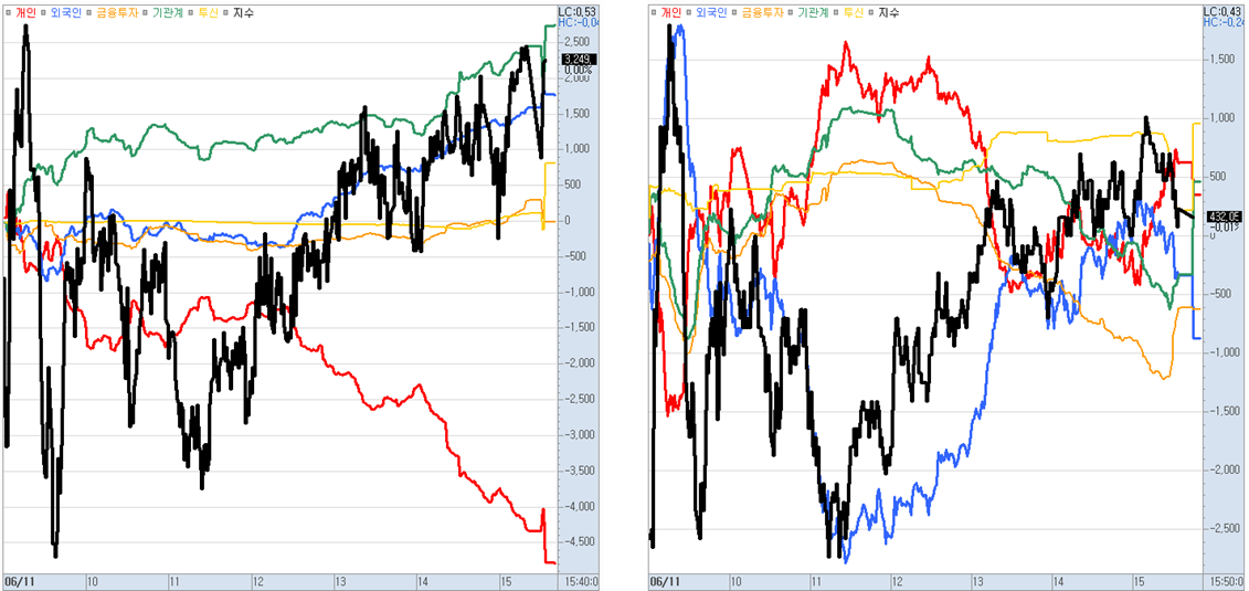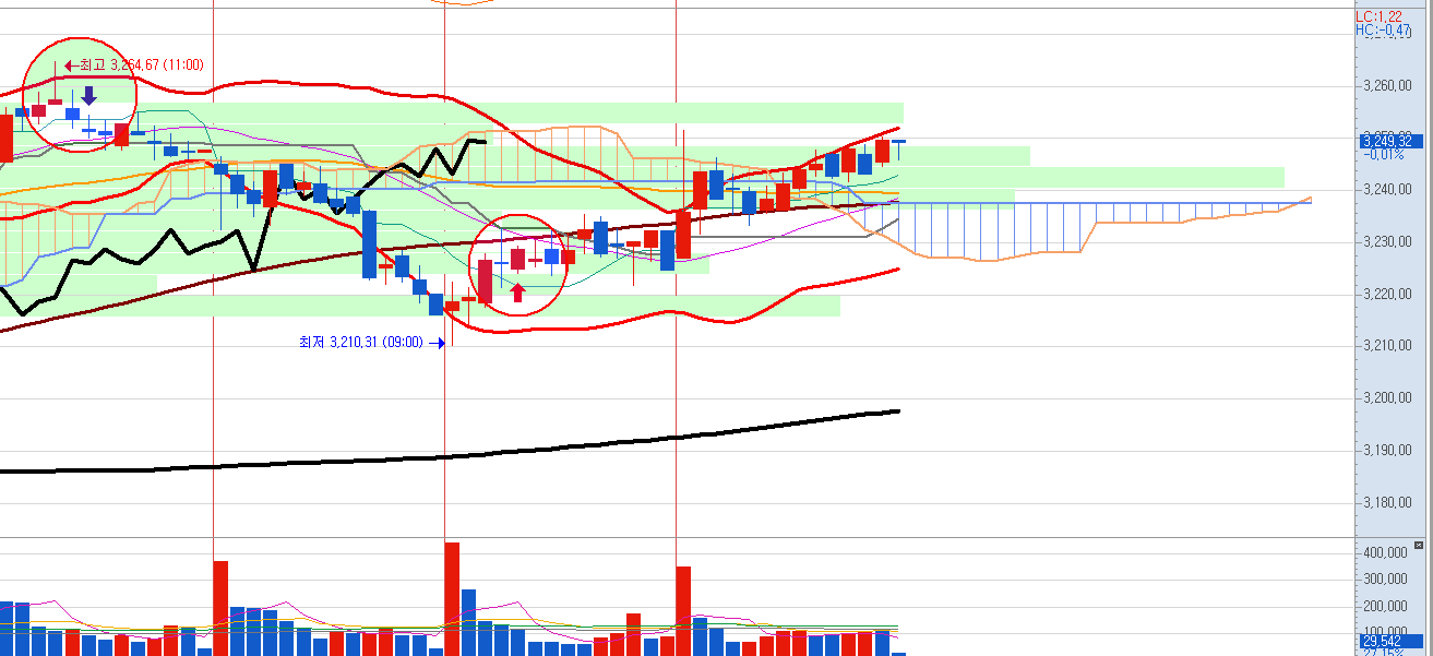 이렇게 보면 결과적으로 수요일의 하락은 만기지수를 맞추기 위한 하락이었다는 생각이 듭니다.