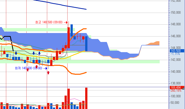 다만 분봉상의 조정 가능성이 보이므로