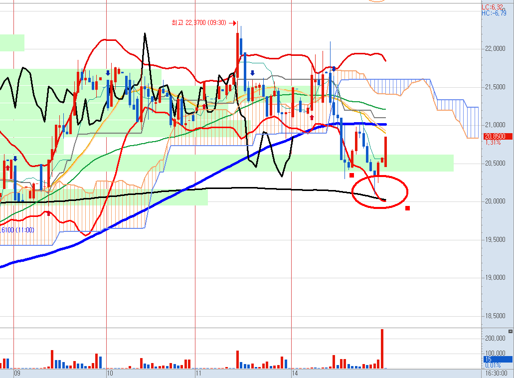 그 아래는 20일 선이 받쳐주고 있습니다.