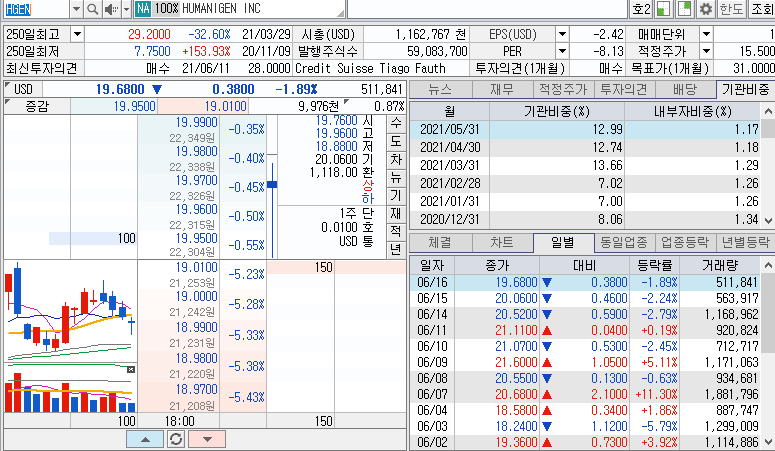 | 어제의 데칼코마니? 휴머니젠(HGEN) 장 마감 시황 분석 (1) | 2021.06.18 |